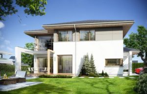 może oznaczać niezrównaną wygodę, na co najlepszym dowodem jest projekt Modena. Budynek posiada „tylko” niecałe 150m2 powierzchni użytkowej, ale mimo to znajdziemy w nim na parterze ogromny pokój dzienny połączony z jadalnią, otwarty przeszkleniami na taras, co jest nie tylko imponujące estetycznie, ale zwłaszcza po uwzględnieniu kominka, szalenie komfortowe. We własnym domu nie brakuje miejsca na przestronne sypialnie dla domowników (w domu Modena na zacisznym piętrze), a walki o łazienkę stają się ponurym wspomnieniem. Dom modena ma 2 łazienki i jeszcze dodatkowo WC. Nie do przecenienia jest ponadto posiadanie własnego dwustanowiskowego garażu, co prócz wygody jest też inwestycją w swój samochód.