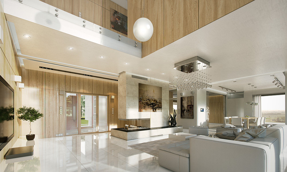 to trudne do zauważenia na pierwszy rzut oka, budynek został zaplanowany na rzucie prostokąta, co zapewnia mu znakomite właściwości pod względem oszczędności energii oraz obniża koszty jego wzniesienia. Nie potrzeba dla niego też dużej działki. Teren o rozmiarach 30,70×27,18 w zupełności wystarczy, by za domem zmieścił się nawet basen z tarasem-deckiem. Przepastny garaż został wpisany w bryłę budynku, a układ funkcjonalny wnętrza został rozplanowany tak, by ten fakt w żaden sposób nie przeszkadzał domownikom.